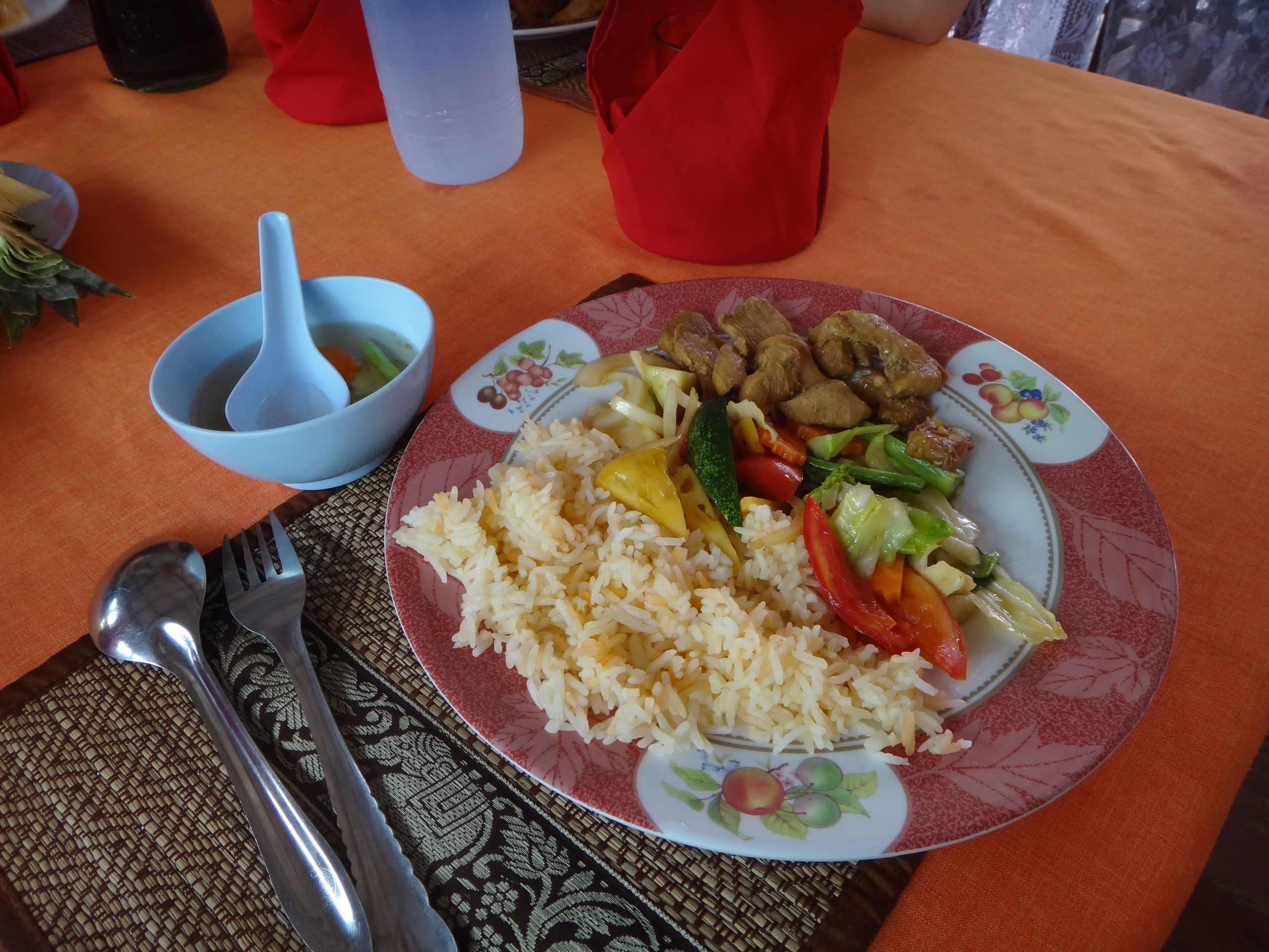 В деревне нас встретили сотрудники морского ресторана Sunny Seafood, призывая нас пройти внутрь и вкусить местные кулинарные изыски. Тайская кухня славится своими вкусными супчиками, взяла себе один попробовать.